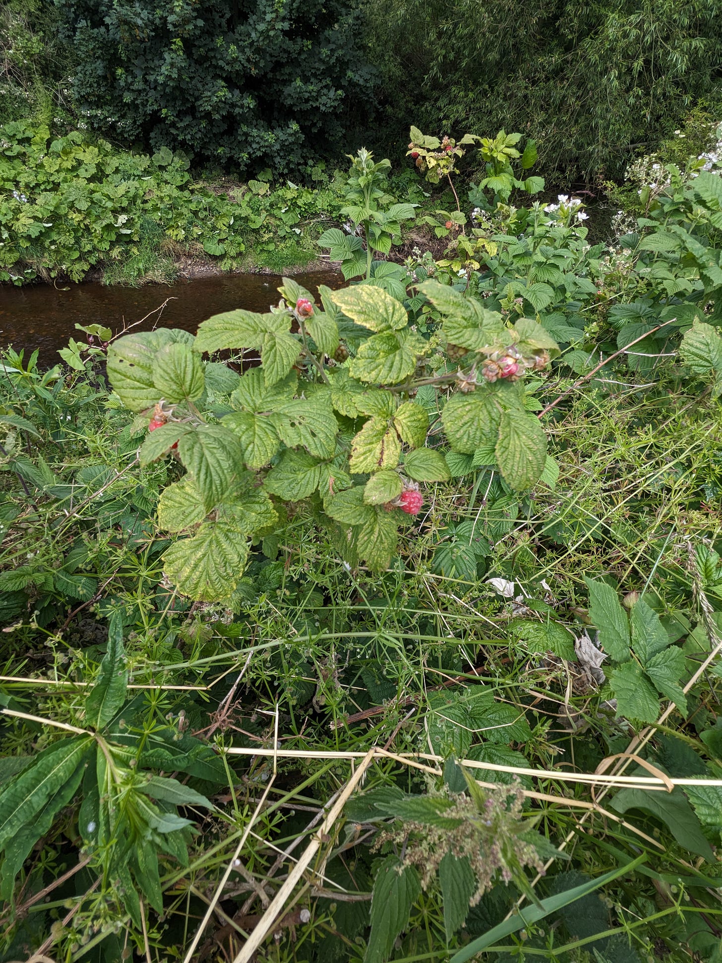 On the latest microseason walk, I peered through the fence of our local allotments to spot the first signs of raspberries amongst the brambles.