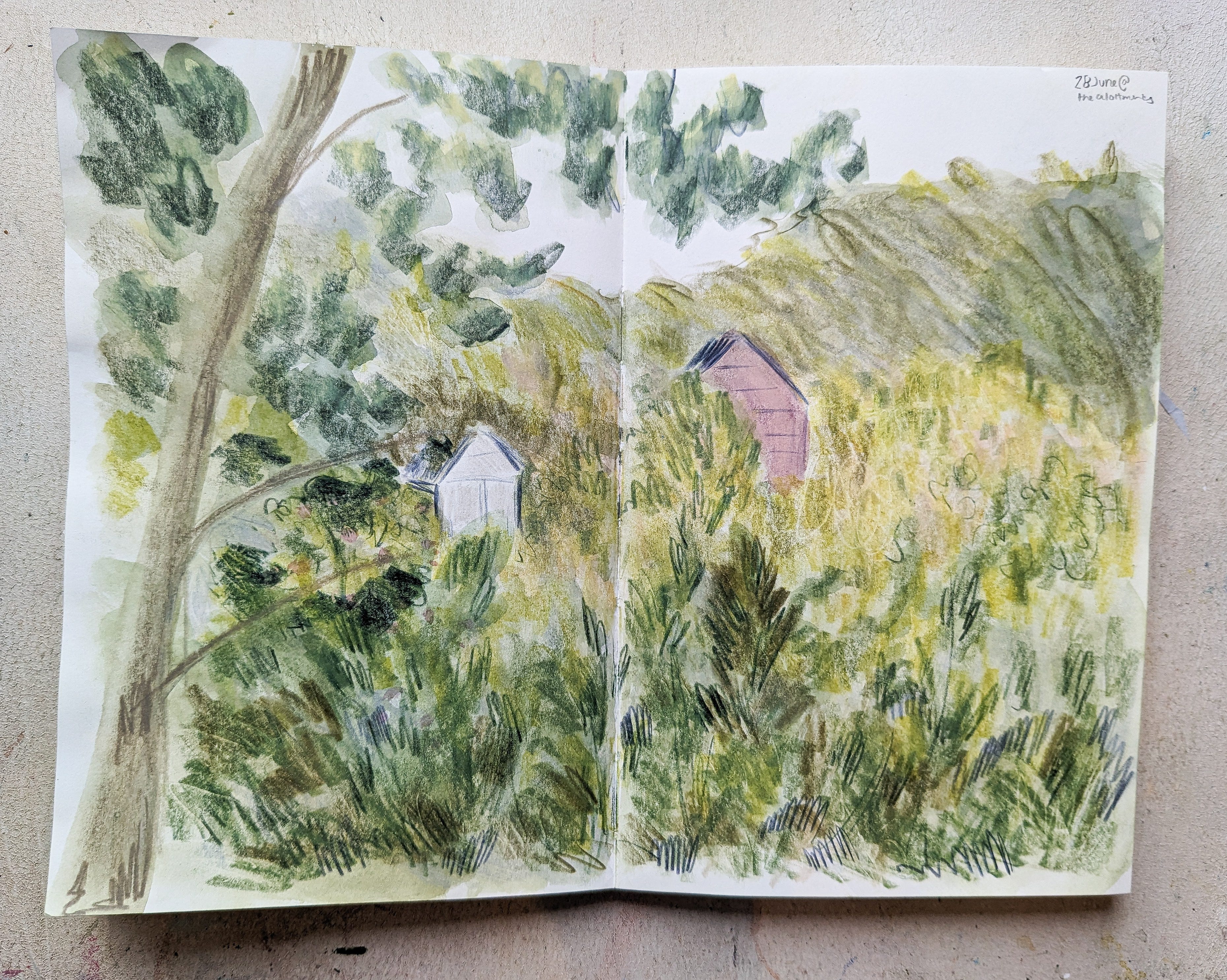 This is something I started on location in my Yuzu Flex, then finished up at my art desk with lots of green pencils - a process time lapse is up on my Instagram.