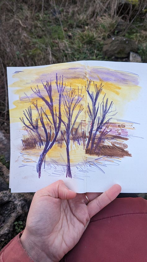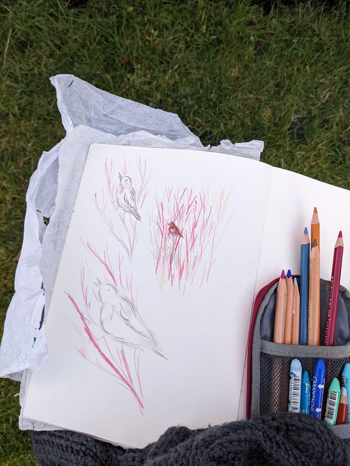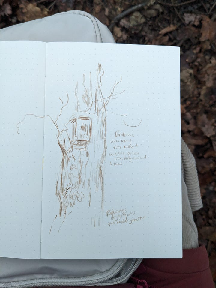 This month, I’ve been trying to draw outside a bit more - carving little bits of time before or after work. Sometimes, I’ve been too cold or pressed for time to do more than a couple strokes of the pencil. But, it’s caused me to be a bit more intentional about time spent outside, which I’ve been a bit more reluctant about lately.