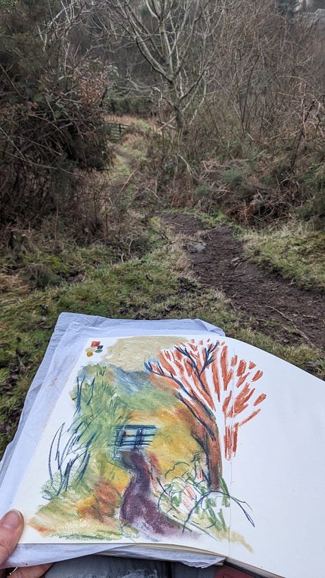 I’m trying a couple of new things this time, including the timelapse above, in which I’ve given a go to the ‘Visual Journals’ Helen C Stark has so kindly been walking us through on her Substack. I’ve been a bit obsessed with her journals this year, and have sometimes tried to create one to capture any seasonal highlights.