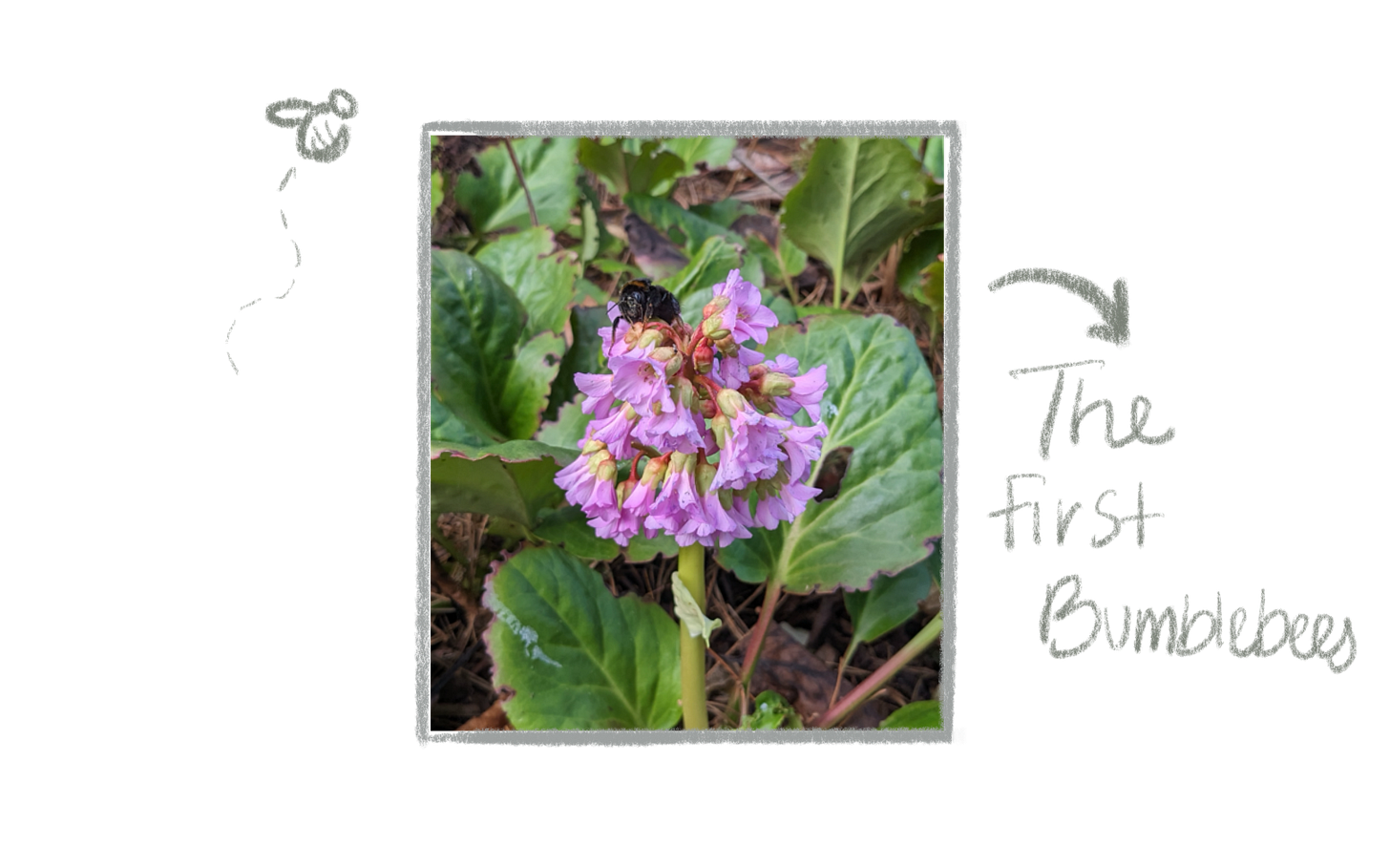 I rather excitingly saw my first bumblebee a couple of week’s back at the Botanic Gardens, which inspired a conversation with a friend about what happens to bees in the wintertime. Here’s what I’ve found out: For bumblebees, only the queen survives the winter by hibernating undergrounds. So, the first signs we see of bumblebees are often of the emerging queen, thirsty for pollen and in search of a new home. The early crocuses and catkins are often important sources of pollen for bees at this time.